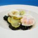 - Colocar un montoncito del guiso de patata con calabaza bien escurrido en el centro del plato.