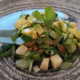 - Una vez está todo cortado y mezclado en la fuente, añadir el pan frito roto en trozos de unos 3 centímetros más o menos y mezclar todo con la salsa.
