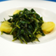 - Colocar en un plato sopero un poco de infusión de cardo y jengibre y sobre esta, las pencas de cardo recién fritas.