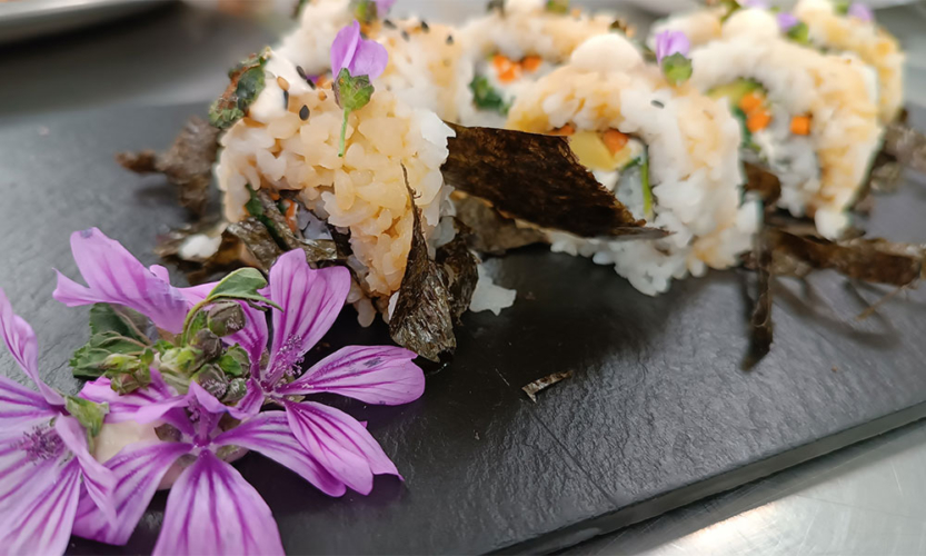 Curiosa y creativa elaboración con malva para crear un sushi de lo más rico y estéticamente bello.